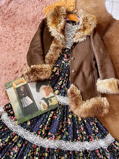 These embroidered blouses are very popular and I totally get it. This cotton beauty had details to die for and is in a very beautiful condition. She has a minor repair done to her sleeve, this resulted in a tiny white yarn dot. It is shown in the pictures. A staple to build any bohemian dream outfit on.