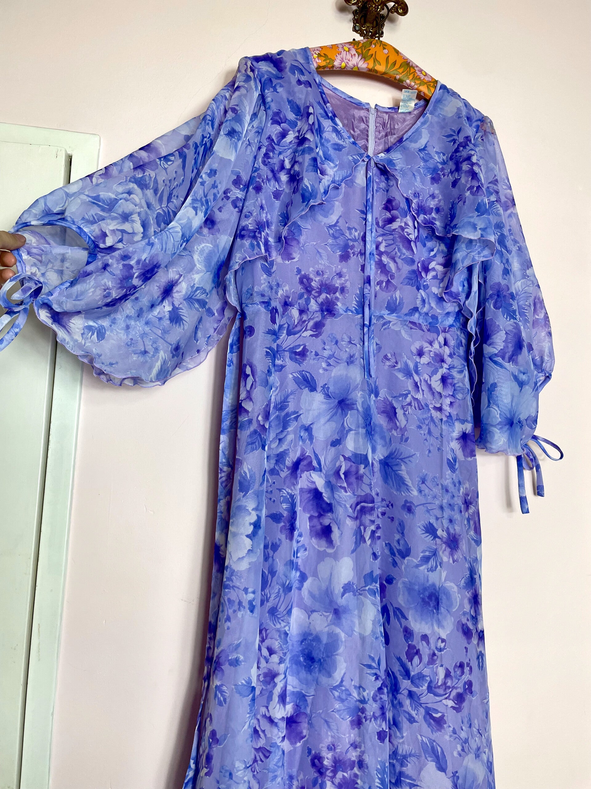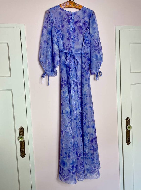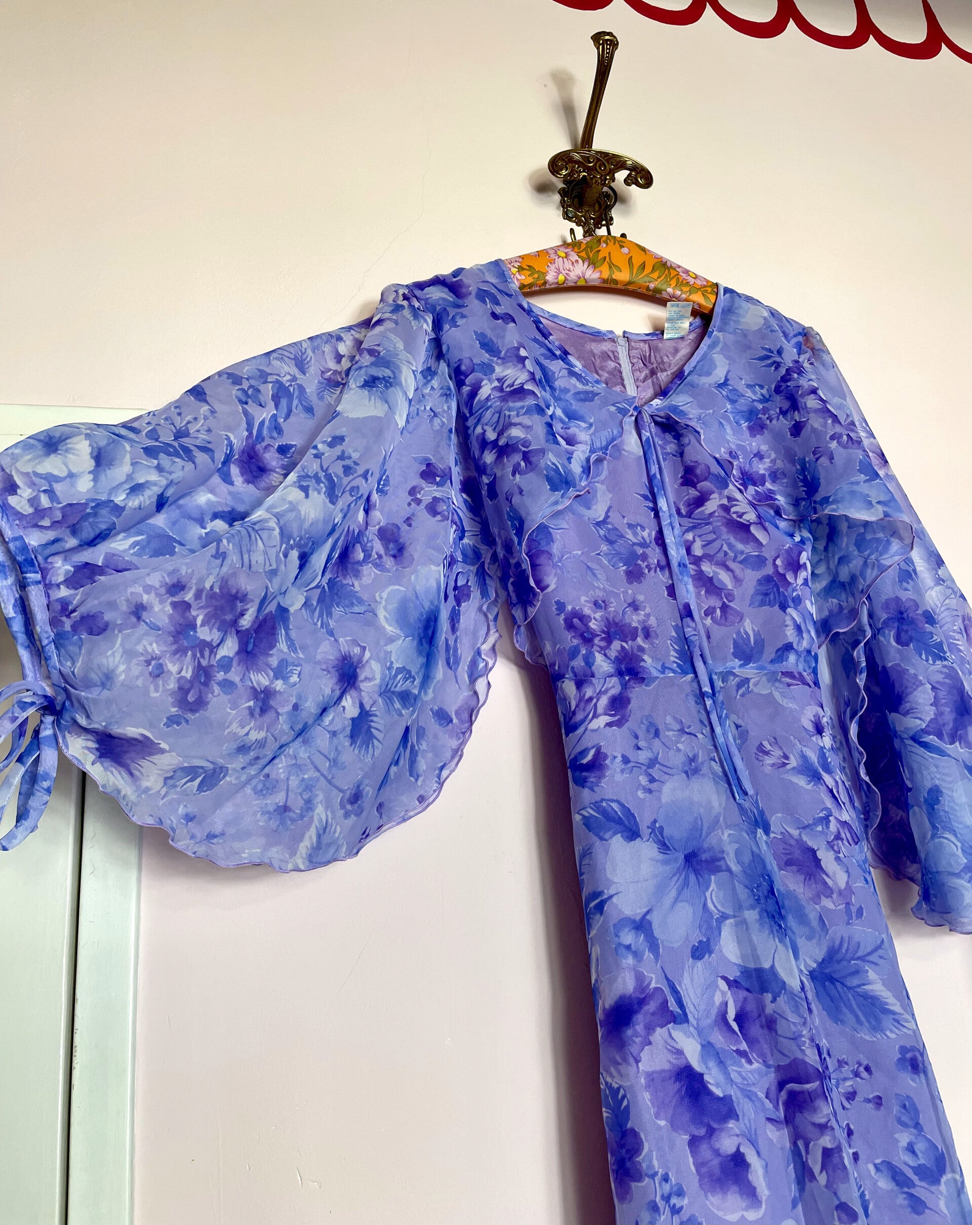 This dress is just so, ethereal. I mean look at those sleeves! She is very flowy and will make you feel like a butterfly goddess when wearing it. She is a synthetic but soft material and in very great condition.